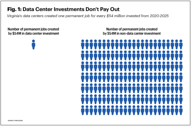 A Wall Street Journal article titled “The AI Data-Center Boom Is a Job-Creation Bust,” the chief executive of data-center operator Patmos Hosting shares that, “Data centers have rightly earned a dismal reputation of creating the lowest number of jobs per square foot in their facilities.”