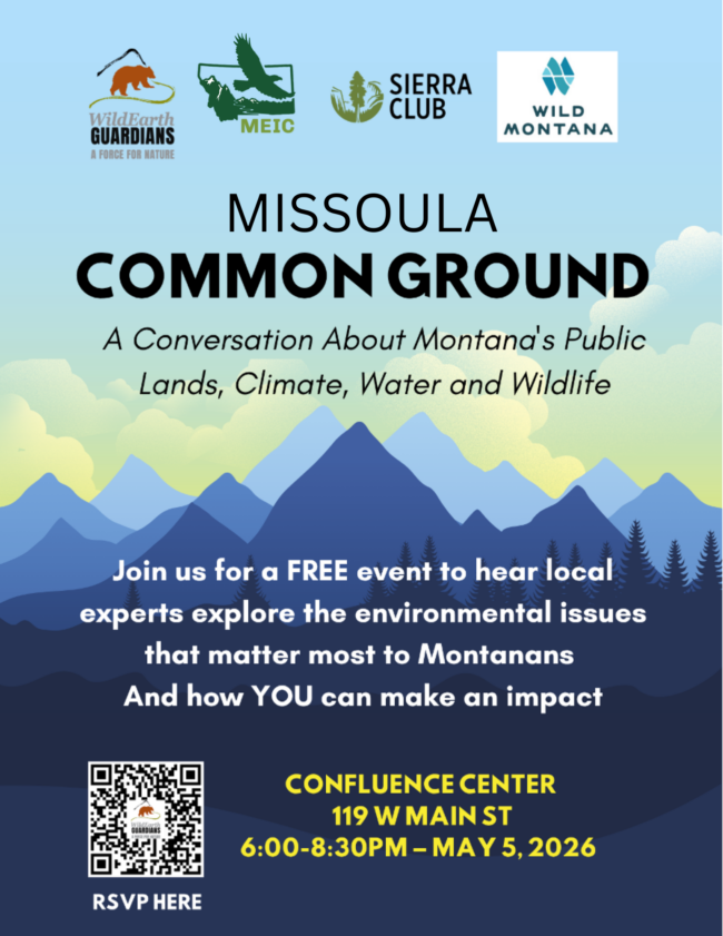 Join us in Missoula for an open community conversation with leading voices in wildlife, climate, water, and public lands. Together, we’ll explore what’s at stake for Montana’s natural heritage, what’s working, and how we can collectively navigate the challenges ahead.