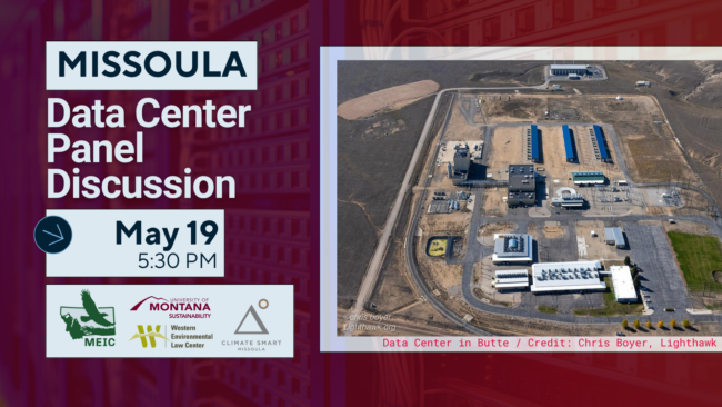 Join MEIC and partners on May 19 in Missoula for a panel discussion to learn about the data centers being proposed in Montana, including one in Bonner, what is at stake, and how we can organize to protect our communities and our future.