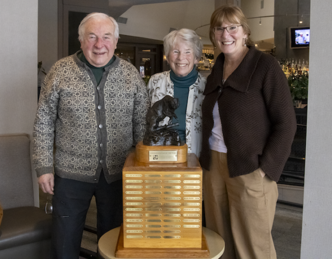 MEIC’s 2025 Conservationists of the Year, Harold and Jan Hoem, with MEIC executive director Anne Hedges.